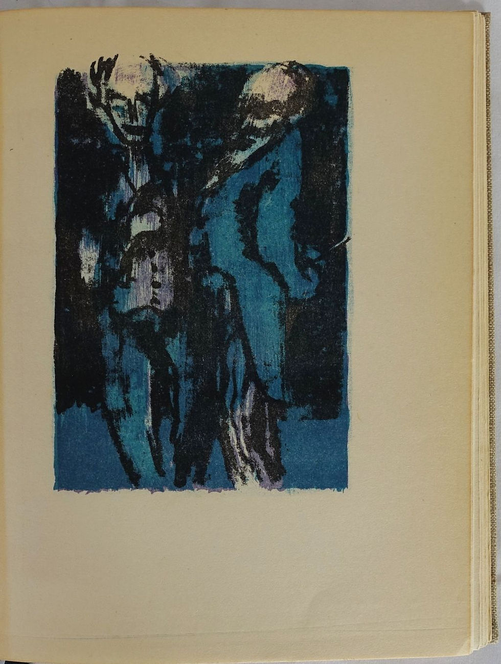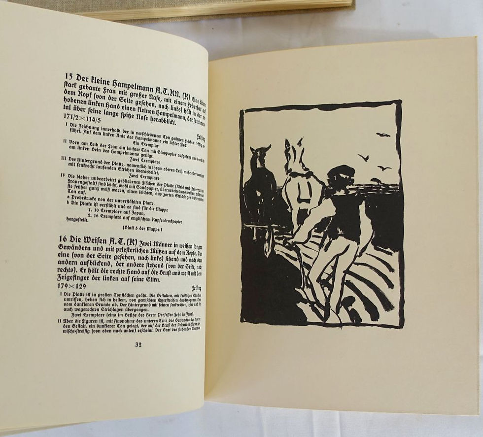 4 ton. 313 pages. With 3 full-page original lithographs (2 in color), 4 full-page original woodcuts, and 57 original woodcuts in the text. Volume 1 in a bibliophile premium cardboard binding with spine and cover titles and a large cover vignette in a printed original slipcase. Volume 2 in an original cloth binding with spine and cover titles and a large cover vignette. One of 450 or 520 numbered copies of this incunabulum of German Expressionist book printing. The lavish selection of original prints, a total of 64 works by Emil Nolde, makes this work a bibliophile treasure. In immaculate condition. - Schiefler/Mosel 40-78, 153-164, L35, L71 and L77/II.
